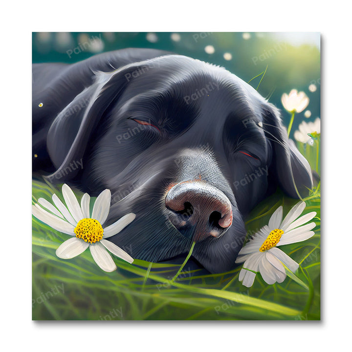 Labrador's Daisies II (Diamond Painting)